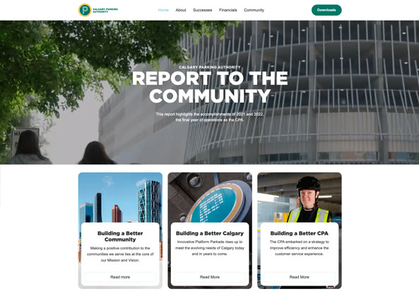 Our Report to the Community summarizes Calgary Parking's activities in the communities we serve and highlights the successes that we celebrated in 2021 and 2022, the last two years of operations as the CPA. You’ll find our financials, information about the role we play in Calgary as well as some of the ways in which we gave back to the community.
